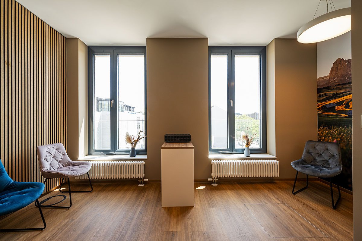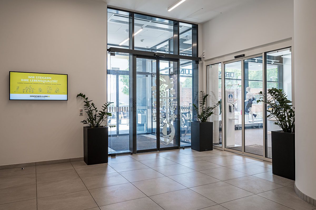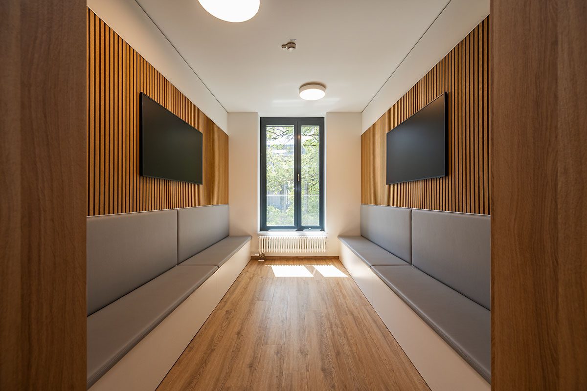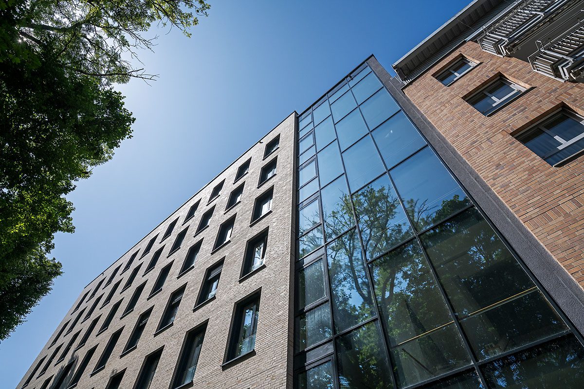 Im Innenbereich kamen leistungsstarke TĂŒrsysteme zum Einsatz, die Sicherheit und Ăsthetik verbinden. TiefgaragentĂŒren im System ADS 80 FR 30 mit DrehtĂŒrantrieben gewĂ€hrleisten einen reibungslosen Zugang. Ăber die Geschosse hinweg wurden TĂŒren in den Systemen ADS 90 FR 30 und ADS 90 FR 90 verbaut, ergĂ€nzt durch einen kleineren Anteil an TĂŒren und Festfeldern im System ADS 65 NI. Auch im Erdgeschoss sorgt eine automatische SchiebetĂŒranlage fĂŒr ein modernes und benutzerfreundliches EntrĂ©e.