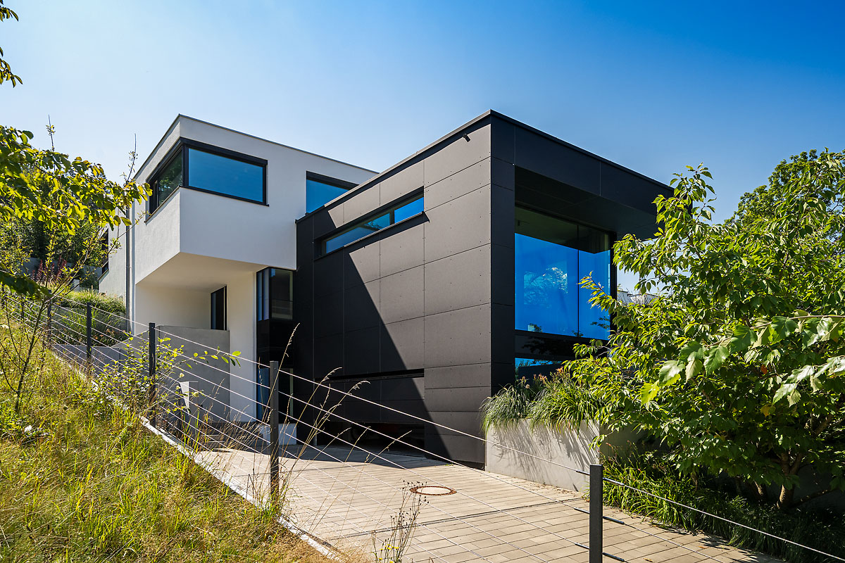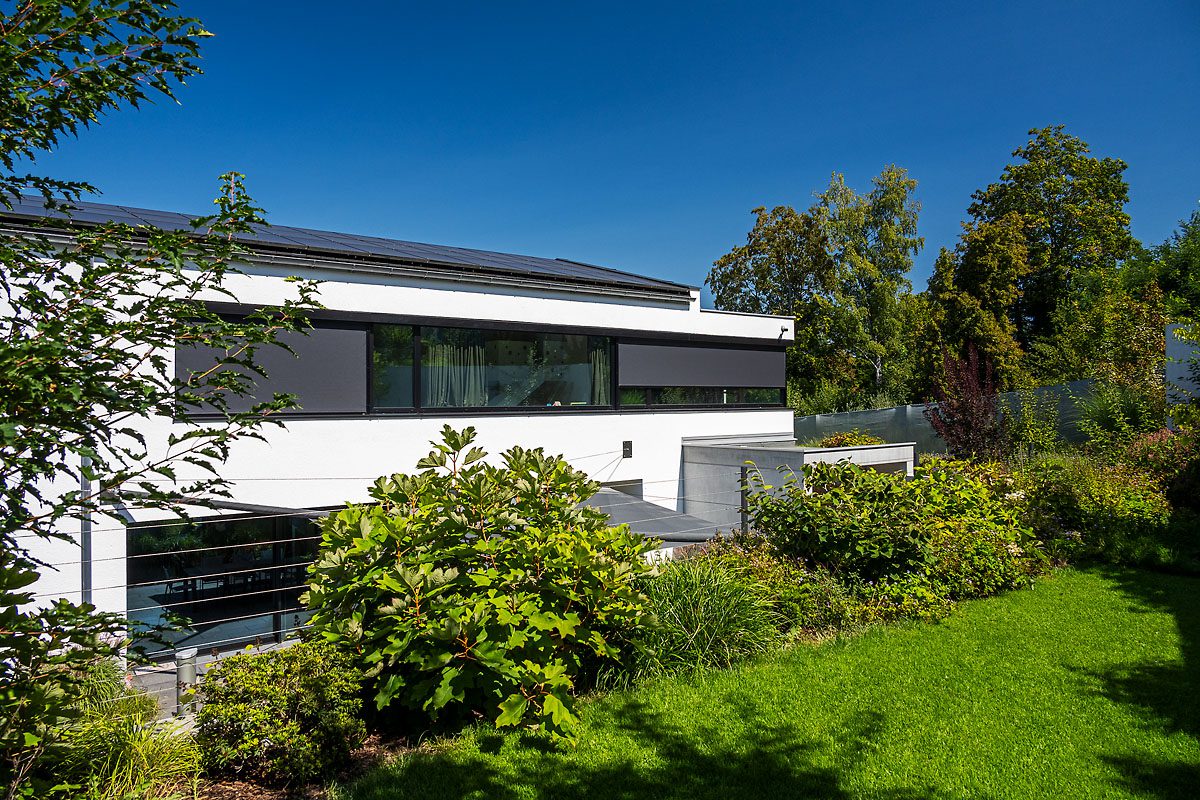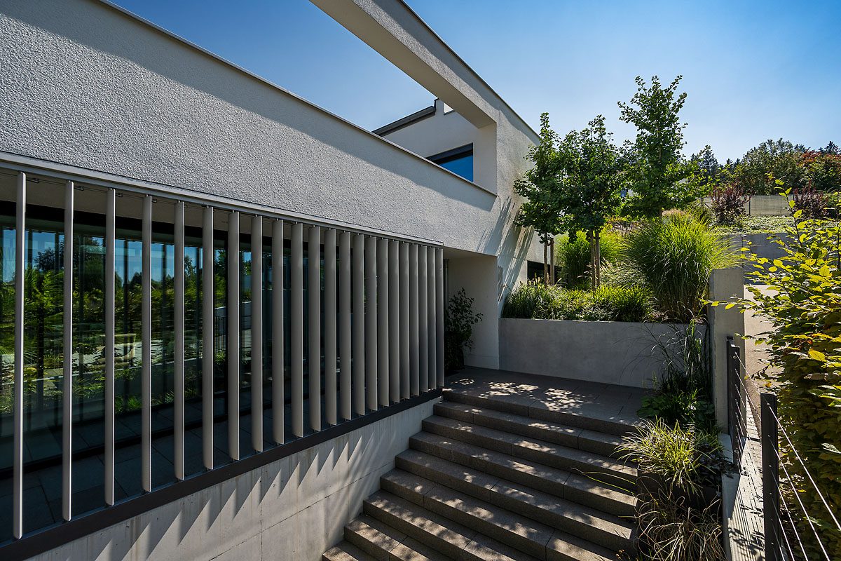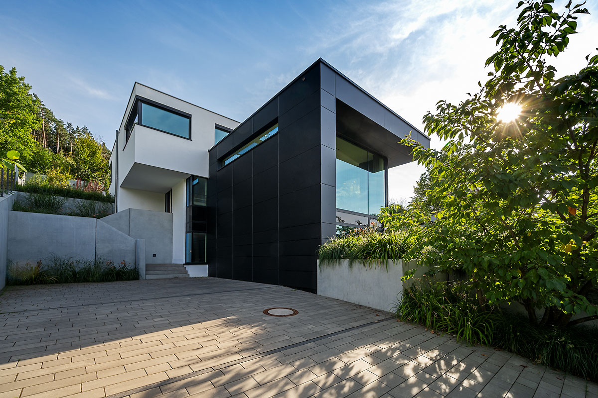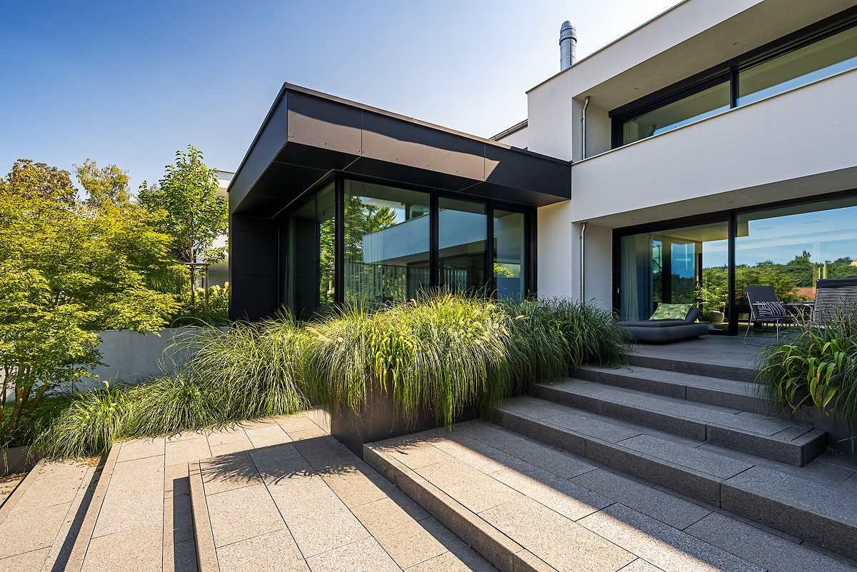 Die Fassaden prĂ€gen den Charakter der HĂ€user maĂgeblich: klare Linien und groĂzĂŒgige GlasflĂ€chen verleihen den GebĂ€uden eine elegante Ausstrahlung und lassen viel Tageslicht in die InnenrĂ€ume. Die verbauten Hebe-Schiebe-Anlagen eröffnen flieĂende ĂbergĂ€nge zwischen Wohnraum und AuĂenbereich â eine Lösung, die gleichermaĂen fĂŒr GroĂzĂŒgigkeit, Komfort und barrierearme Nutzung steht.