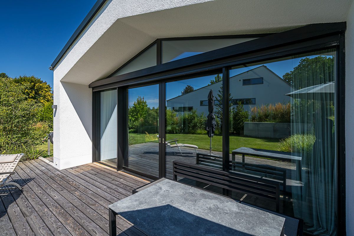 Bei diesem Bauvorhaben wurden sĂ€mtliche Fassaden, Hebe-Schiebe-Anlagen, Fenster und TĂŒren eingebaut und montiert. Die AusfĂŒhrung im Jahr 2023 schuf ein stimmiges Gesamtbild, das moderne Architektur mit hoher FunktionalitĂ€t verbindet.