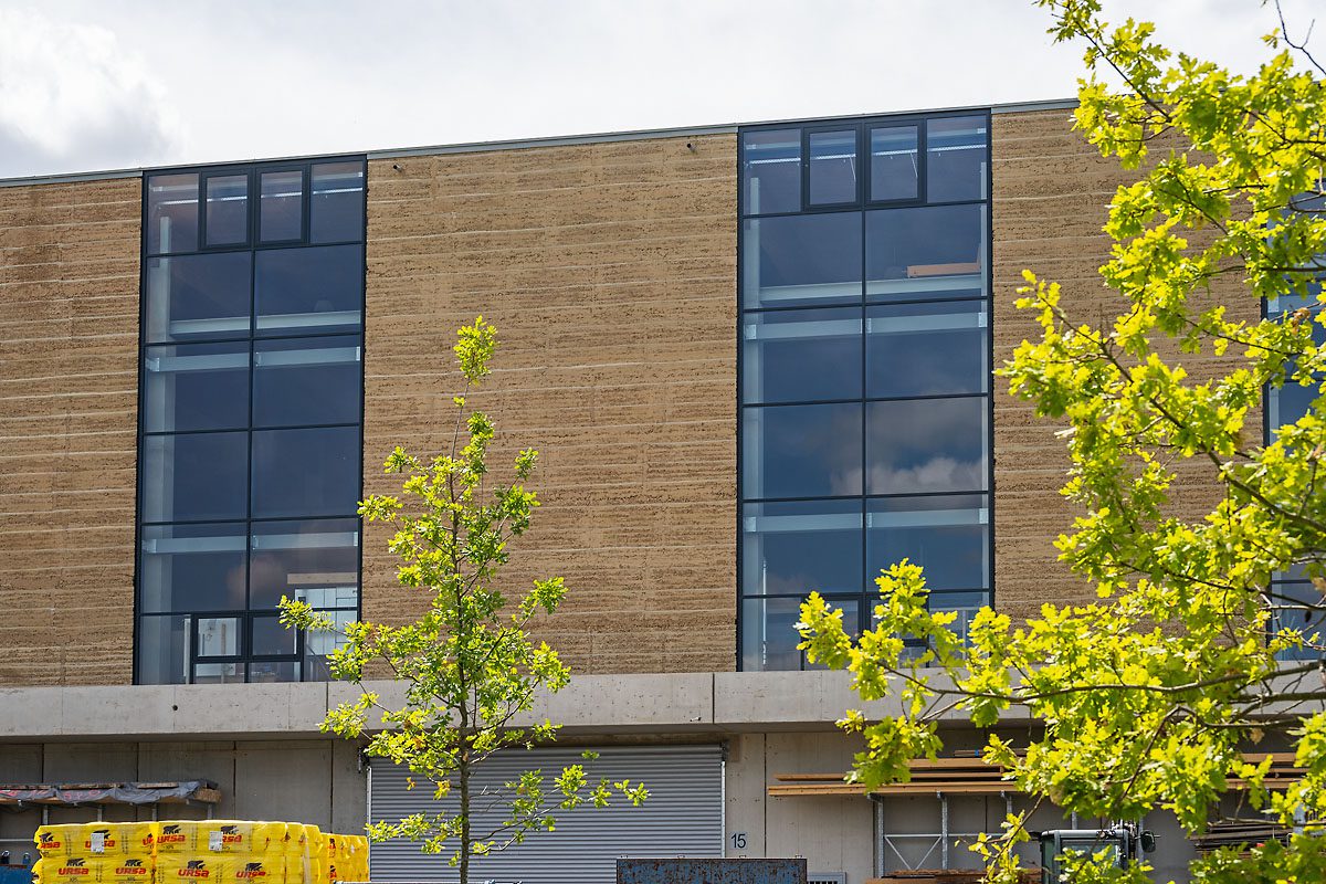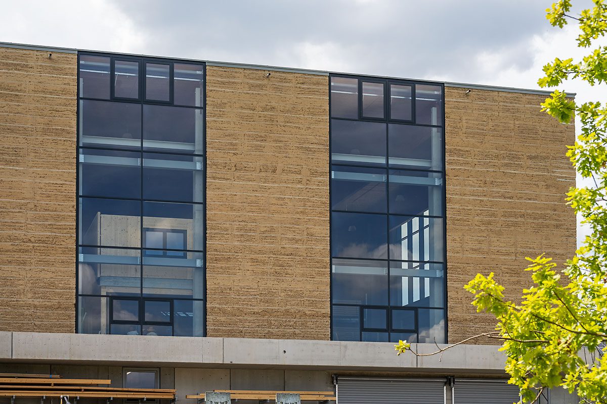 In diesem Projekt wurde eine Aluminium-Glas-Fassade in die experimentell innovativen StampflehmwĂ€nde einer neuen Produktionshalle integriert. Die Fassade verleiht dem GebĂ€ude der Firma Irrenhauser & Seitz ein modernes Erscheinungsbild und bildet einen spannenden Kontrast zu traditionellen Baumaterialien â ein gelungenes Beispiel zeitgemĂ€Ăer Industriearchitektur. GroĂflĂ€chige Verglasungen sorgen fĂŒr reichlich Tageslicht und schaffen eine angenehme ArbeitsatmosphĂ€re in der Halle.
