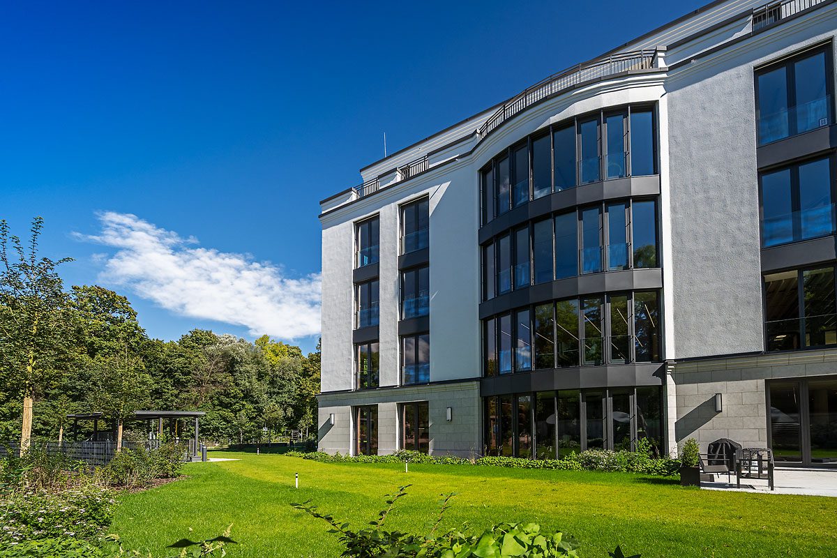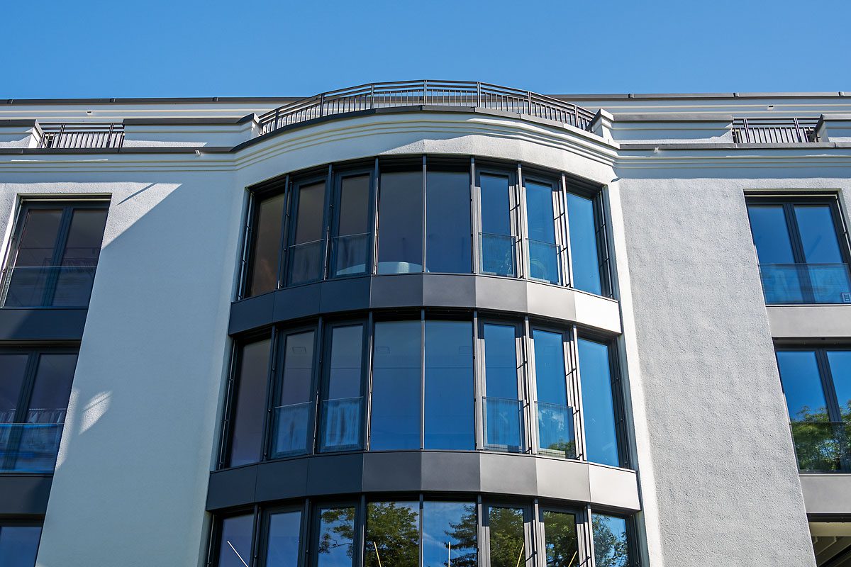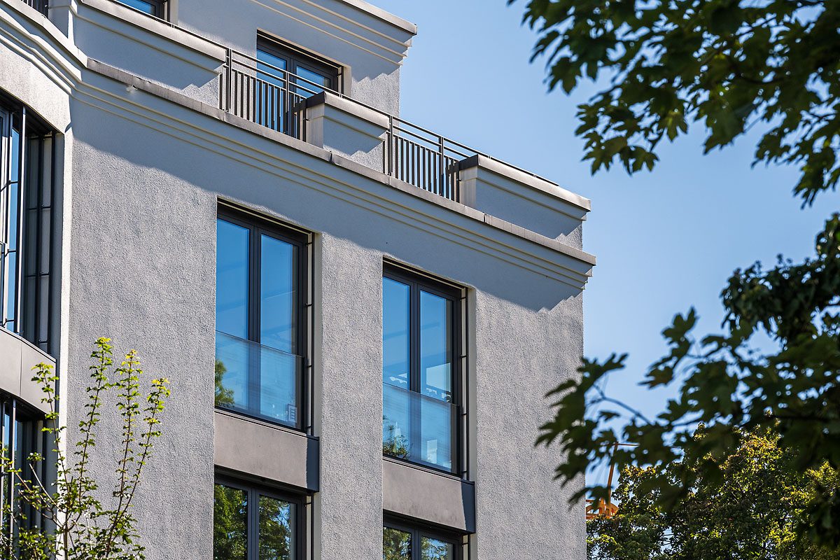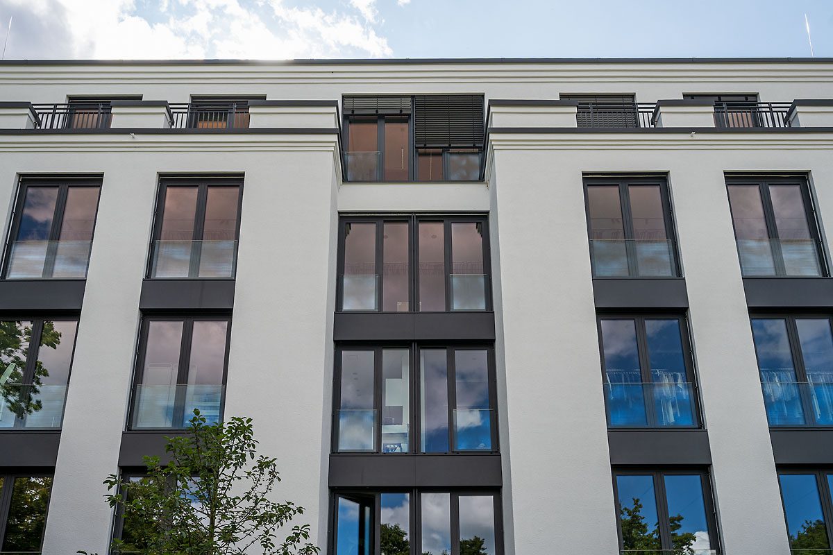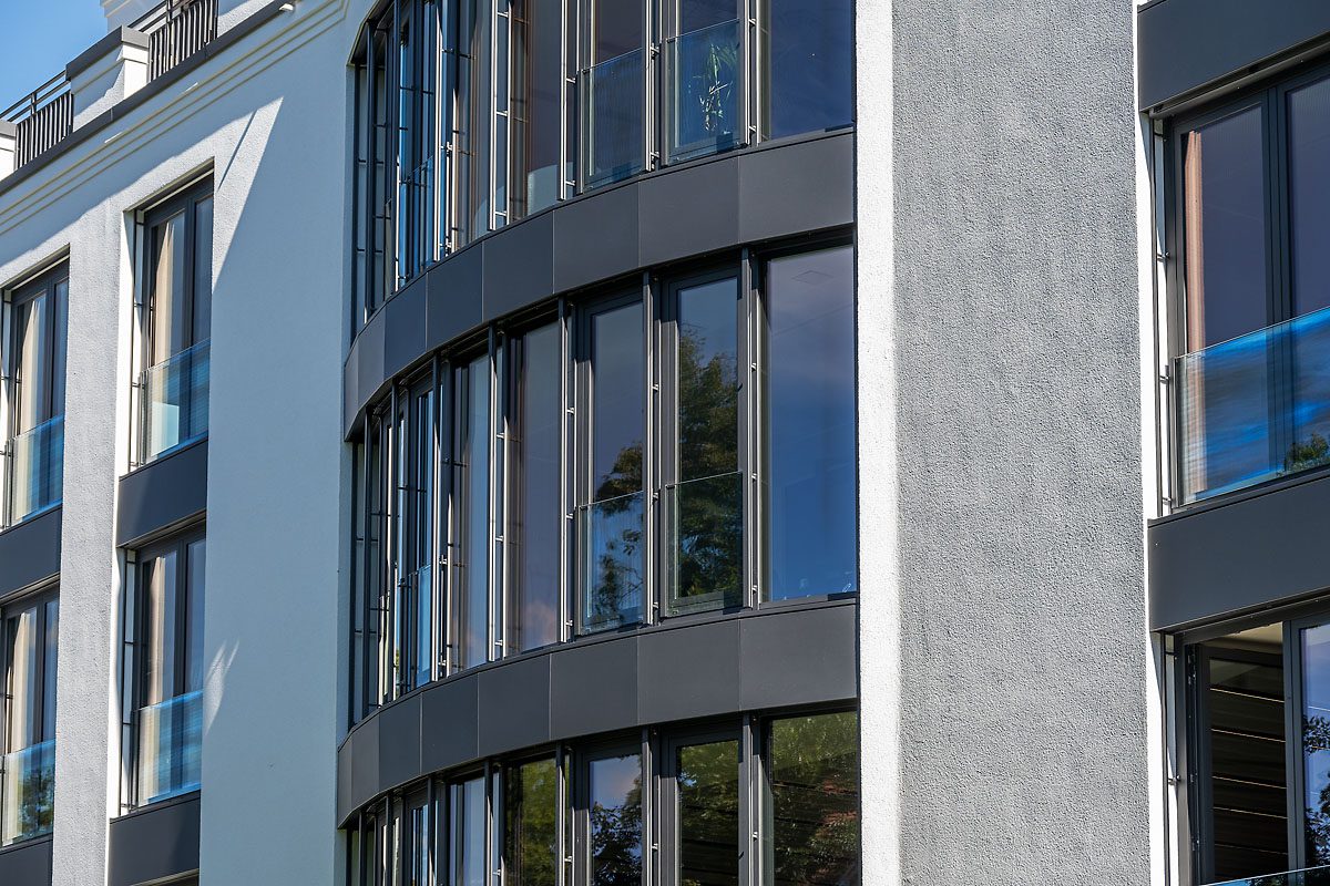 Im Innenbereich dieses Projekts wurden neben modernen SchiebetĂŒren auch verschiedene TĂŒranlagen realisiert. Im Untergeschoss kamen BrandschutztĂŒren des Systems ADS 90 FR 30 sowie RauchschutztĂŒren ADS 65 NI.SP zum Einsatz. Alle TĂŒren sind mit integrierten TĂŒrschlieĂern von SchĂŒco ausgestattet, einzelne zusĂ€tzlich mit leistungsstarken DrehtĂŒrantrieben GEZE Powerturn F/R, die einen komfortablen und sicheren Zugang gewĂ€hrleisten.